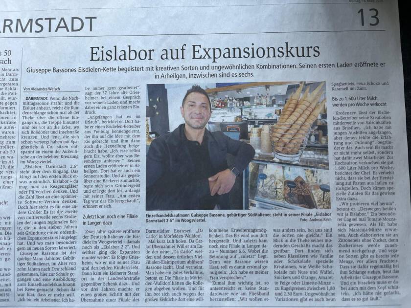 Der Familienbetrieb verfolgt nur ein Ziel: Die Menschen aus Darmstadt und Umgebung mit dem besten italienischen Eis aus Eigenproduktion glücklich zu machen.